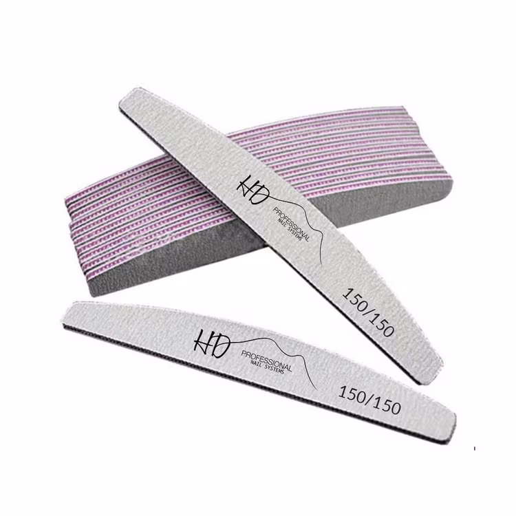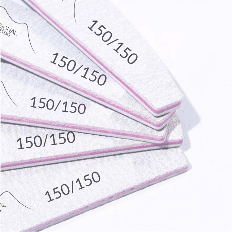 En fil i 150/150 grit med ett sandpapper av hög kvalitet och med lång hållbarhet. Kärnan är av hållbar plast (rosa). Filen har en böjd sida som underlättar vid formfilning runt nagelbandet. Filarna går att sanitera och desinficera för att hålla hög nivå på din hygien i salongen.