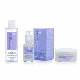 Hela kittet med de tre produkterna i Kaeso Anti-Ageingserie till ett mycket bättre pris! Serien innehåller aktiva ingredienser som boostar kollagenproduktionen och hudens fuktnivåer för att i sin tur minska de synliga ålderstecknen.